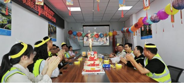 活动在温馨的氛围中拉开帷幕。签到处,工作人员为每位职工发放国旗脸贴,大家笑意盈盈,现场洋溢着浓浓的节日气氛。随着主持人宣布“有请蛋糕入场”,满载祝福的生日蛋糕被缓缓推至场地中央。项目上的寿星代表共同切下第一刀,香甜的奶油气息中传递着真挚的祝福。职工们纷纷用手机记录下这温暖瞬间,并有序领取蛋糕、分享喜悦,真切感受到分公司“大家庭”的关怀与温暖。